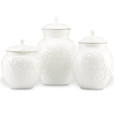 Opal Innocence Carved 3-Piece Canister SetIdeal for organized kitchen storage, the simply elegant Opal Innocence Carved 3-piece Canister Set features the flowing scroll motif in a raised relief on each pristine white rim. This casual and durable ceramic porcelain set is microwave and dishwasher-safe, and includes three uniquely shaped...