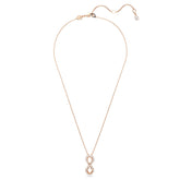Hyperbola pendant, Infinity, White, Rose gold-tone platedEmbrace timeless style with this dazzling Hyperbola pendant in the shape of an infinity symbol. The rose gold-tone plated jewelry is worn on a delicate chain, with its vertical motif embellished with clear Swarovski Zirconia. A single Swarovski Zirconia is also placed in the...