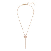Idyllia Y pendant, Crystal pearl, Shell, White, Rose gold-tone platedEmbrace the tranquility of the sea with this ocean-inspired pendant from the Idyllia family. The shell design is rose gold-tone plated and embellished with an array of clear Swarovski Zirconia and a clear round dancing crystal that catches the light. Worn on a delicate...