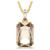 Millenia pendant Octagon cut, Caramel, Gold-tone platedThis glowing Millenia pendant is a creation of pure warmth and luxury. The central motif is crafted from a large caramel crystal in a double prong setting and connects to the gold-tone plated chain via an elegant bail adorned in channel-set purple crystals. Combine...