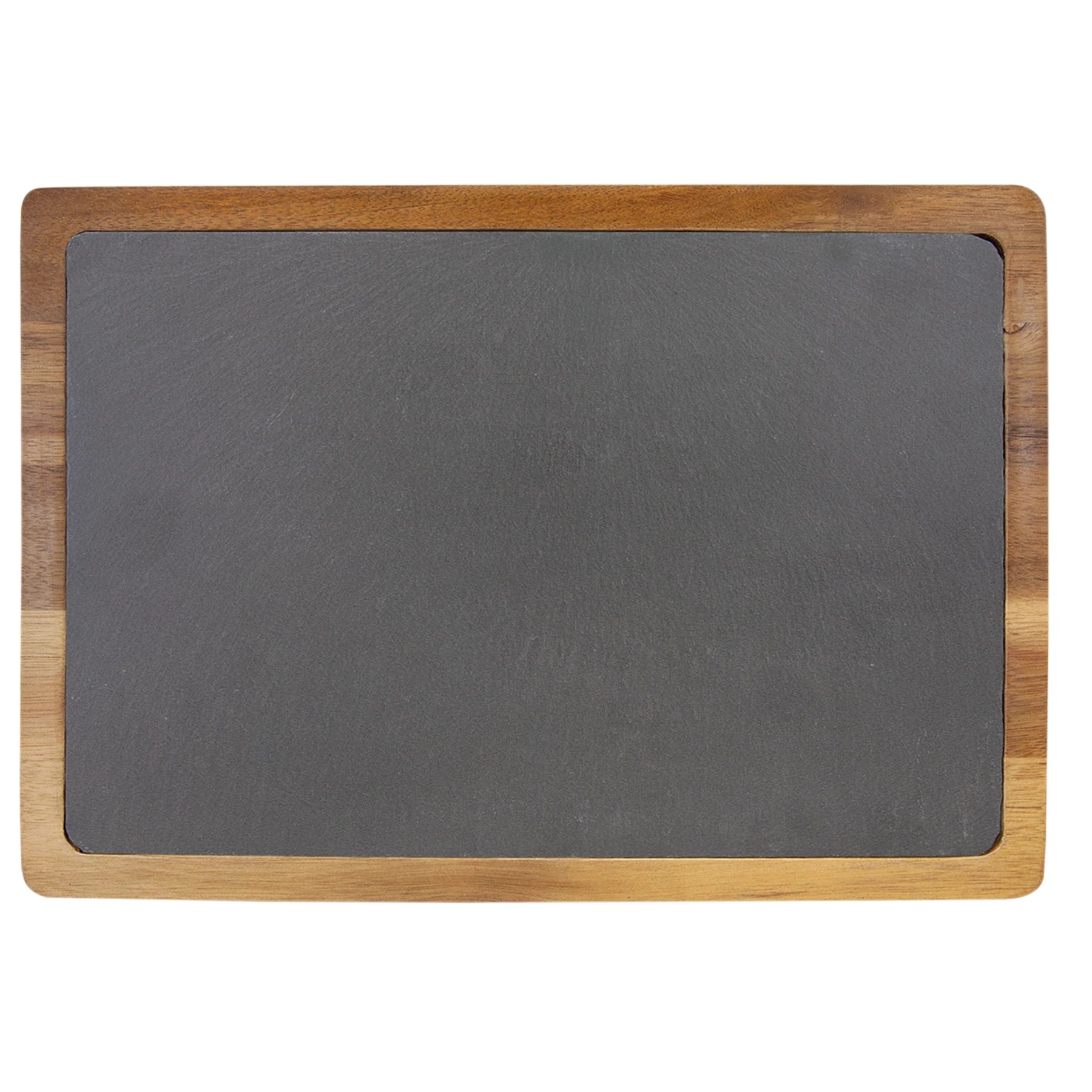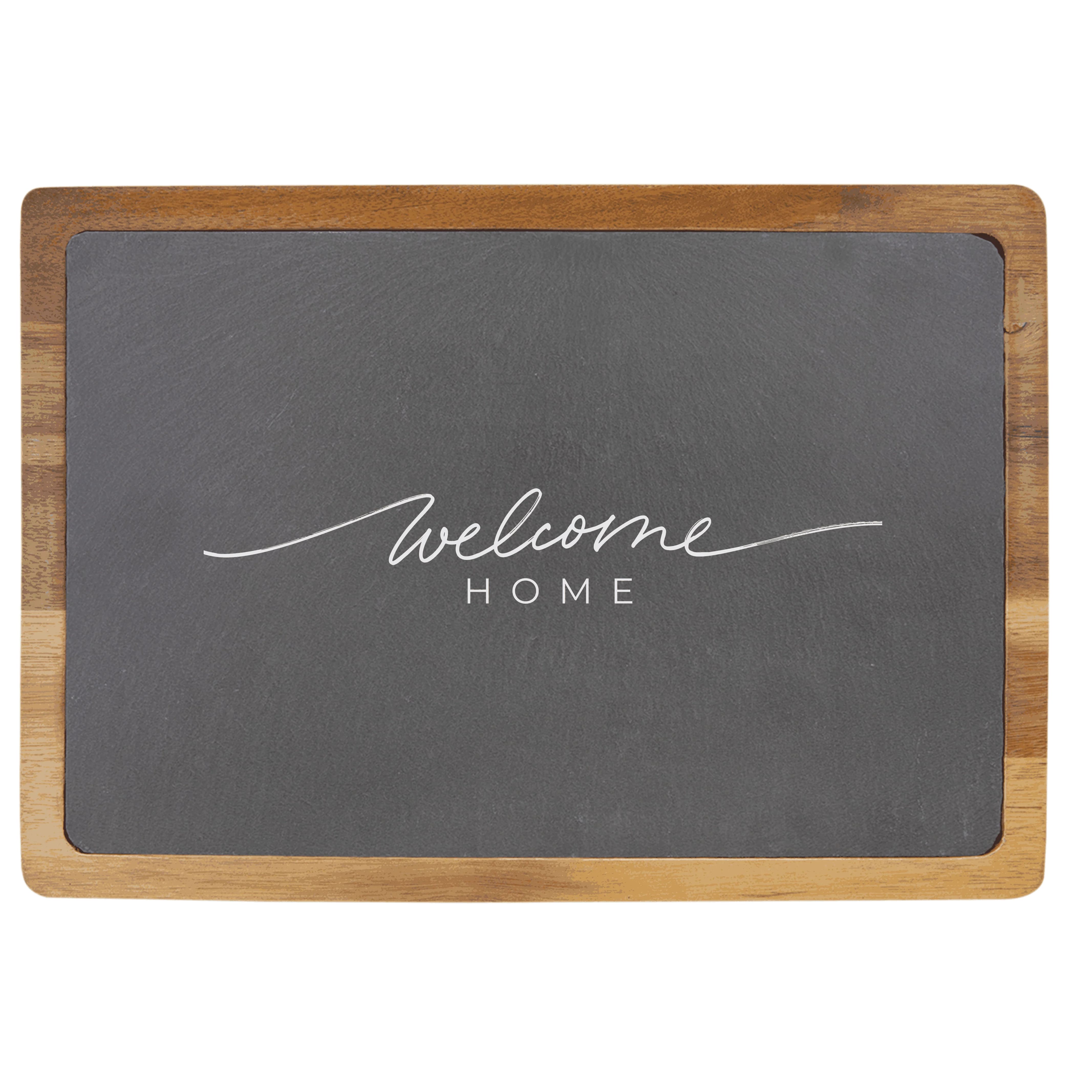 This custom engraved solid wood cutting board can be personalized to a frosty white and makes a wonderful wedding or house-warming gift! It is also a beautiful, useful piece to add to your own kitchen and use to host your favorite guests. This cutting board is made of slate and solid Acacia wood.