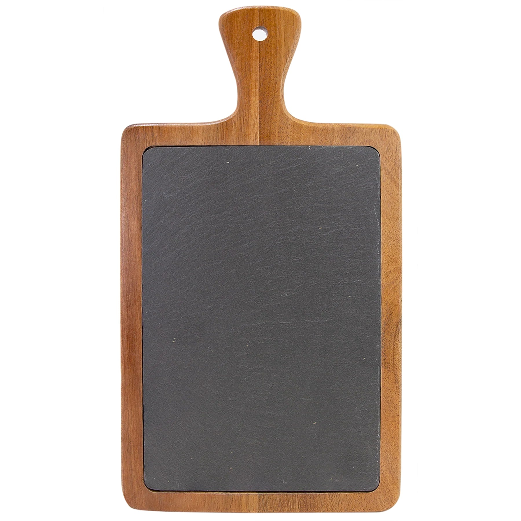 This custom engraved solid wood cutting board with handle can be customized to suit. It makes a wonderful wedding or house-warming gift! It is also a beautiful, useful piece to add to your own kitchen, and use to host your favorite guests. This cutting board is made of slate and solid Acacia wood.