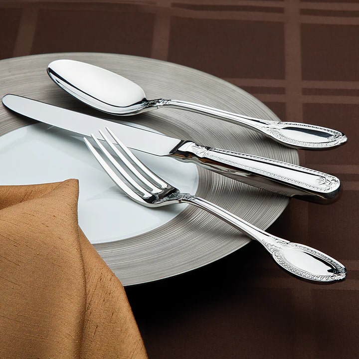 Crafted from heavyweight 18/10 stainless steel, each piece is adorned with deeply detailed relief designs that echo the splendor of ancient Roman elegance. Sturdy yet refined, Imperia Mirror flatware transforms every meal into a celebration of timeless beauty and exquisite craftsmanship.