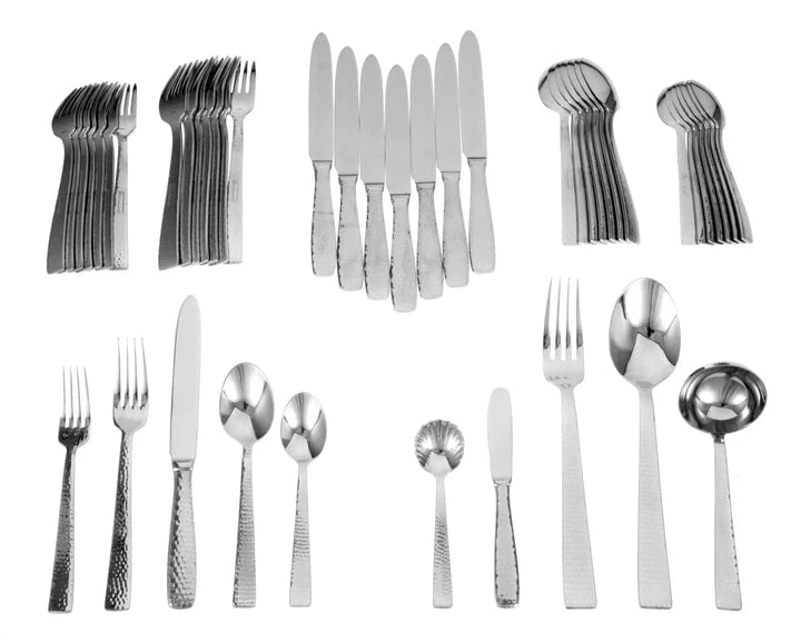 Transform every meal into an extraordinary celebration with Ricci Silversmiths' Martello Mirror 45-piece flatware set. The modern, reflective hammered-finish handles with squared-off ends create a striking yet refined look, making this set the perfect complement to both contemporary and classic tablescapes.