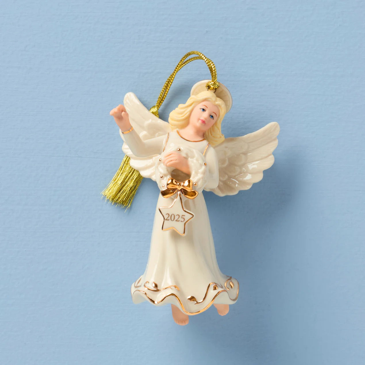 Celebrate the reason for the season with this beautiful, porcelain angel ornament, featuring 24-karat gold detailing on her dress and wings. It's the perfect gift or 2025 memento for yourself!