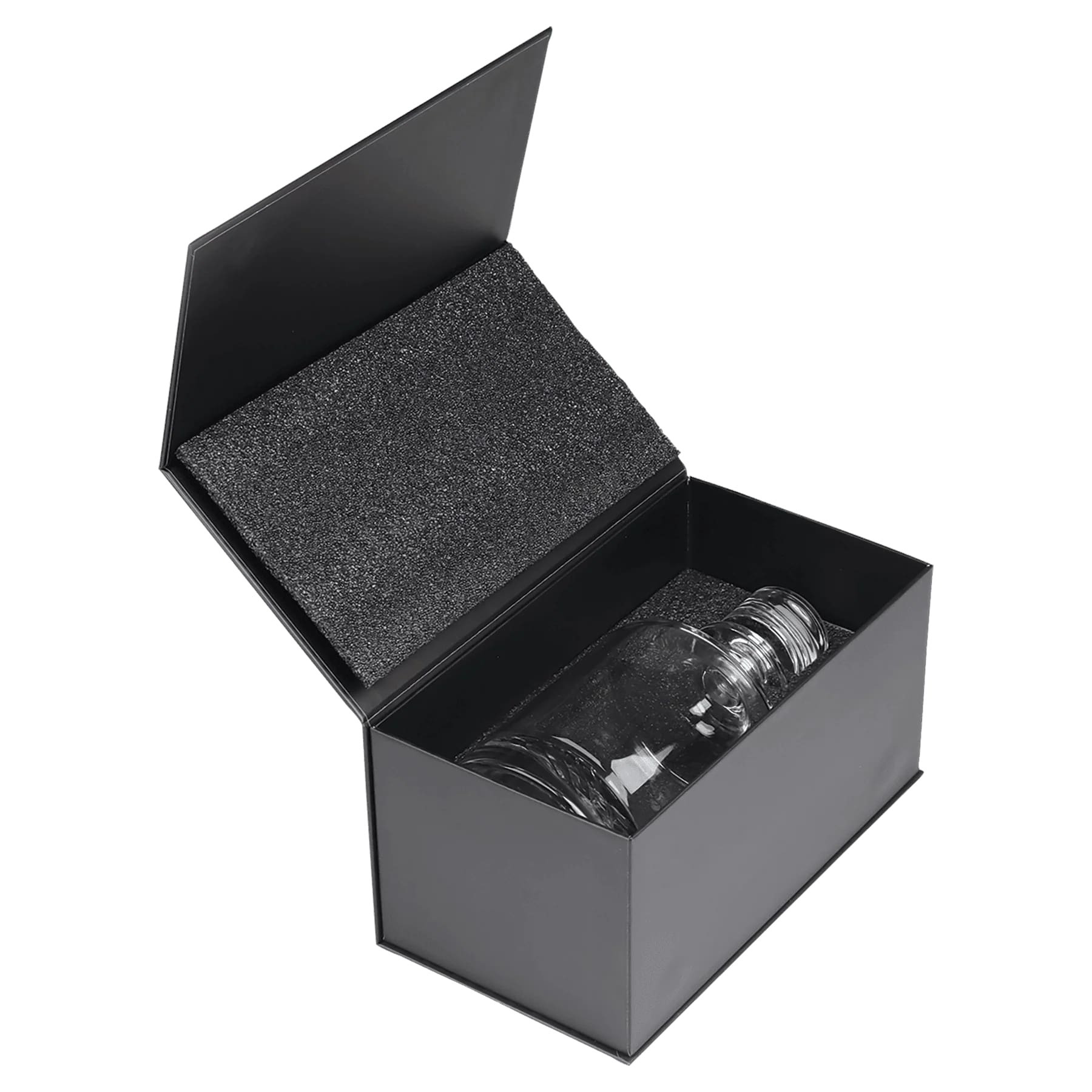 The decanter is packaged in a sturdy black gift box with heavy EVA foam for protection.