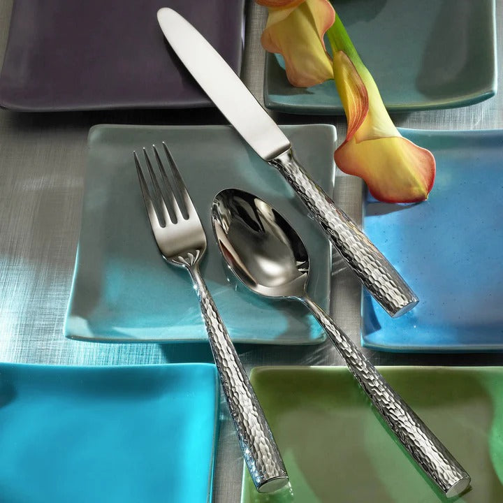 Introducing the Ricci Argentieri Anvil flatware pattern, a bold fusion of strength and sophistication. Crafted from premium 18/10 stainless steel, Anvil’s distinctive design showcases a striking hammered texture that brings a rugged elegance to any table setting.