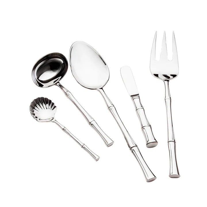 This exquisite Bamboo Hostess set exudes elegance, with its exquisite detailing and light construction providing easy handling for a touch of refinement in any dining setting. This exquisite flatware set is the ideal balance of aesthetics, design, and utility, making any mealtime a special occasion—pairing flawlessly with the flatware set.