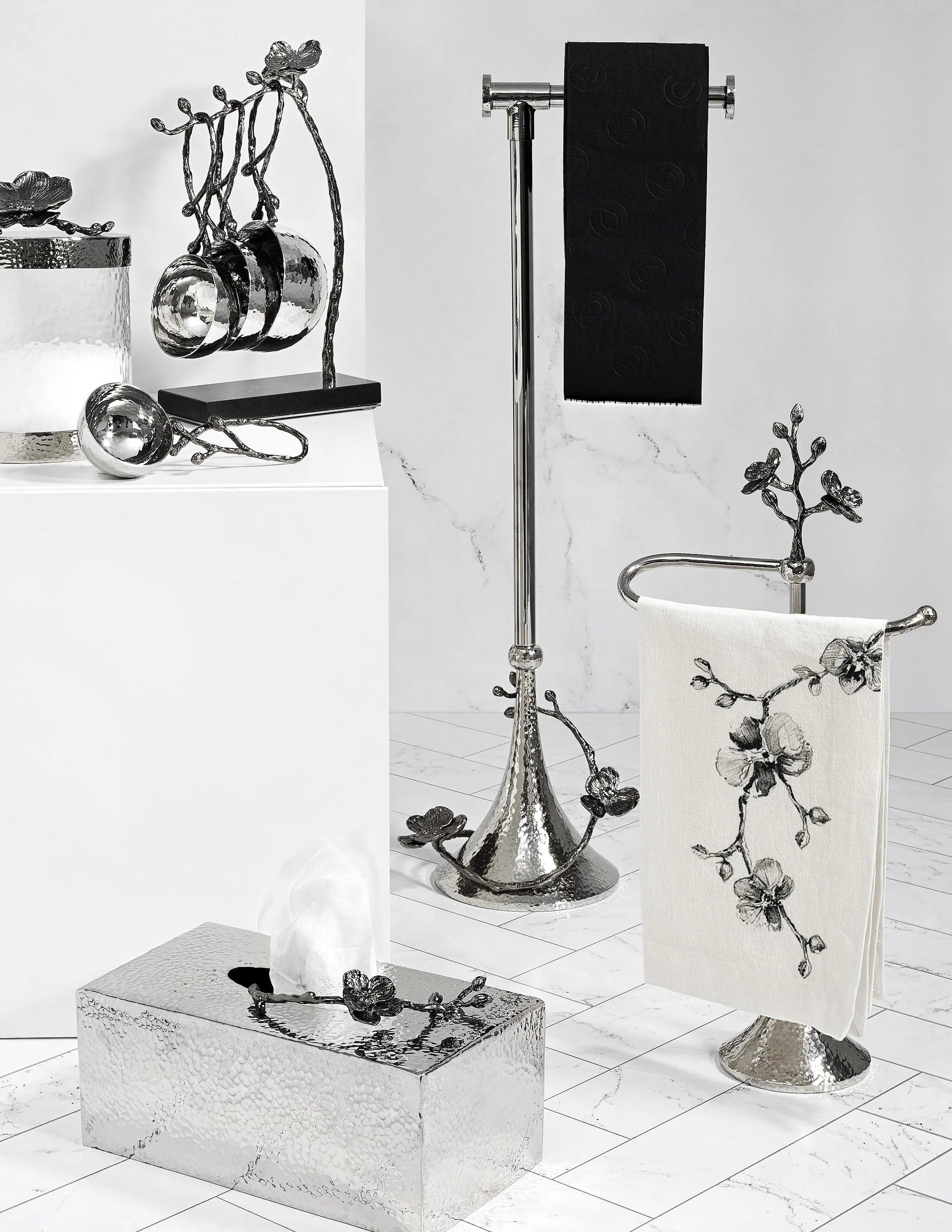 Handcrafted with exquisite detail, the Black Orchid Toilet Paper Stand transforms function into art. Inspired by the orchid’s delicate beauty and the sensual mystery of its black form, it elevates the everyday with elegance and refinement.