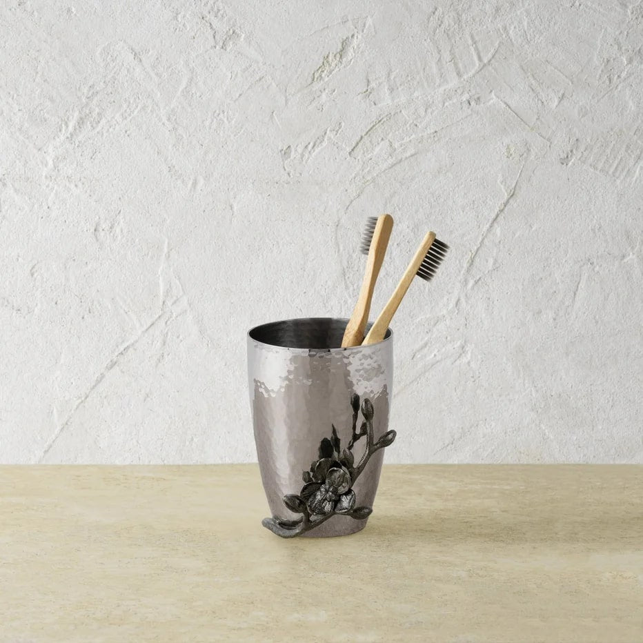 Elevate your bathroom with the Michael Aram Black Orchid Tooth Brush Holder, part of the ethereal Orchid Collection. Handcrafted with sculptural artistry, its sleek black design embodies the mystery, sensuality, and grace of the orchid, turning a functional object into a statement of refined elegance.