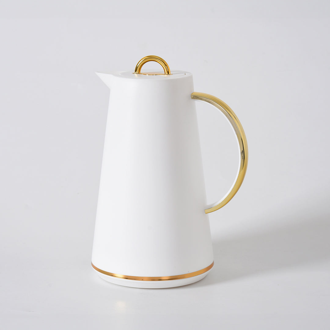 This Textured Thermal Carafe was crafted using vacuum insulation technology – keeping your beverages hot for up to 12 hours or cold for up to 24 hours. Featuring a sleek and modern design, this thermal beverage dispenser not only looks great on your table but also functions as a practical and convenient solution for serving hot or cold drinks. Crafted with a high-quality black body with gold detailing and unique pink glass inner lining. Handwash Only. Capacity: 1L