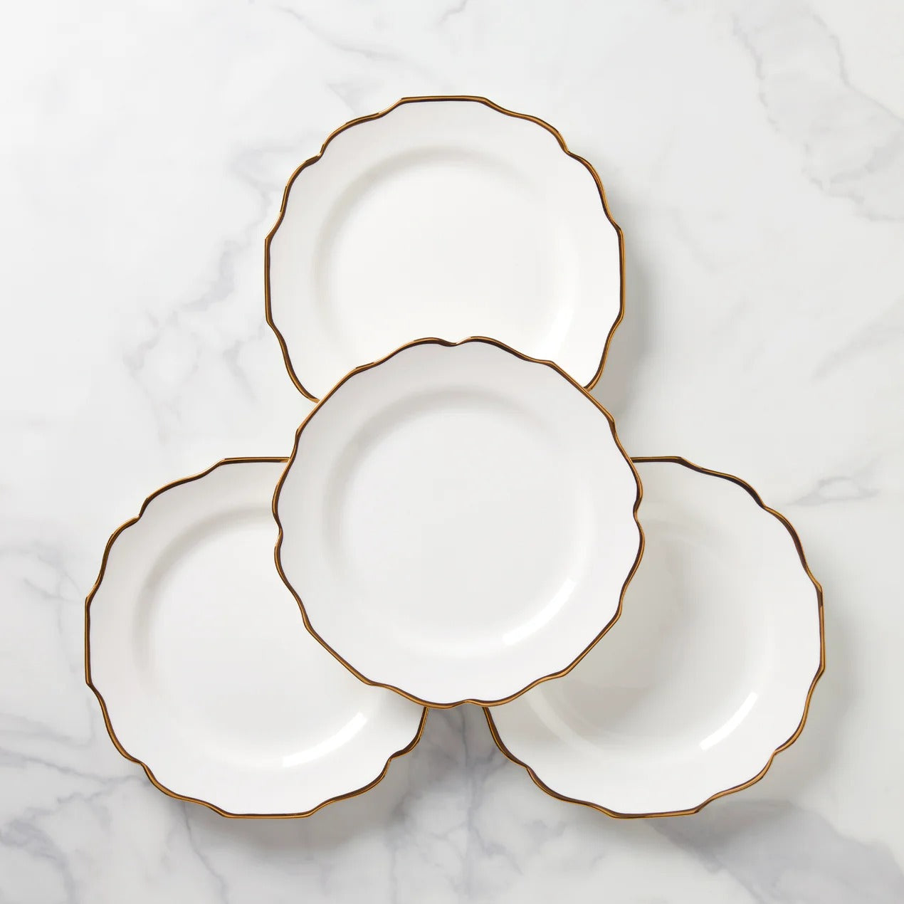 These Contempo Luxe Dinner Plates boast a revolutionary microwave-safe gold trim around scalloped edges. Crafted from durable porcelain, this dishwasher and microwave-safe dinner plates are excellent for formal and everyday occasions.