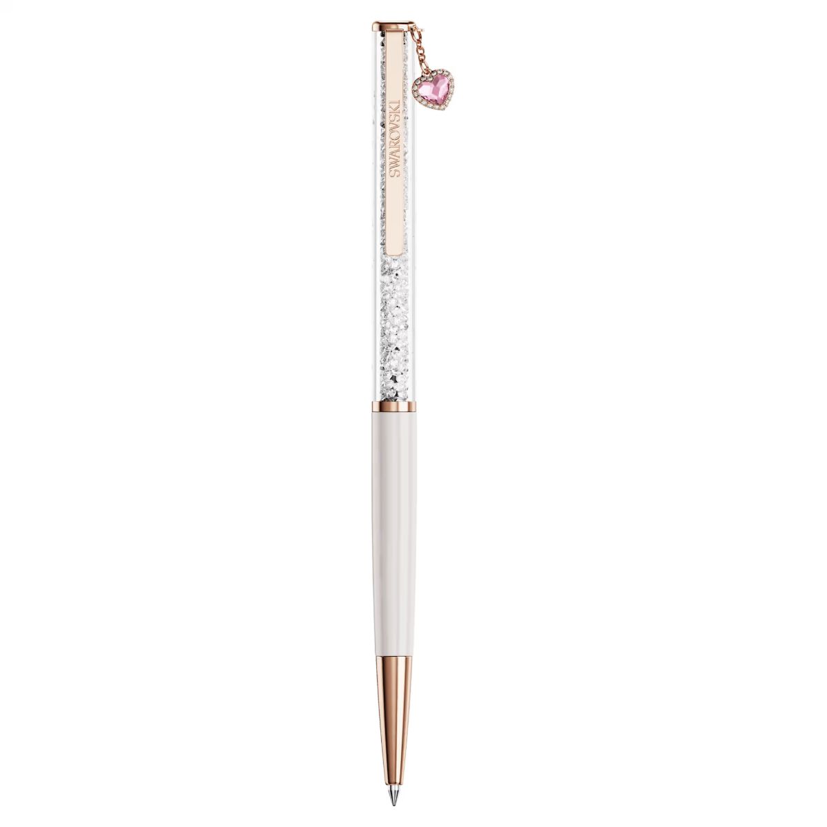 This slender ballpoint pen offers a timeless accessory for endless creativity. The slimline design is filled with around 400 clear crystals, which are visible through the long transparent window. Along with a lacquered pink barrel, the pen includes rose gold-tone plating, as well as a pink love heart charm - symbolizing affection, intention, and a personal touch behind every word written. Gift to yourself or someone you adore. Refills of black and blue inks are available to purchase in Swarovski stores.