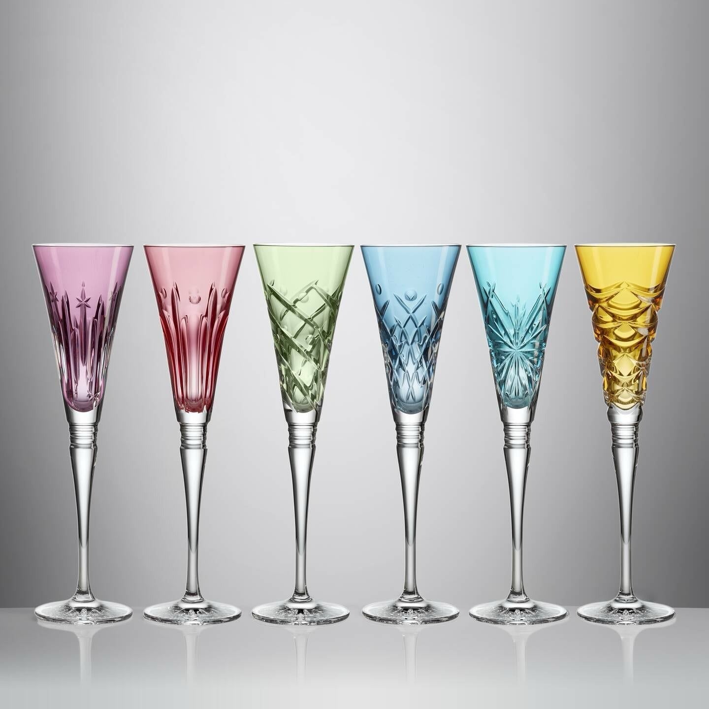 Add the breathtaking wonder of nature to your home with Waterford's 6 year series collection, Winter Wonders. This colored crystal Flutes Set allows you to collect all 6 patterns at once, featuring Midnight Frost, Winter Rose, Mistletoe, Holly, Snowflakes, and Pinecones. Make celebratory moments even more meaningful year after year with the organic touch of Winter Wonders.