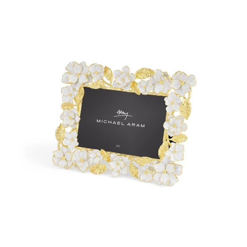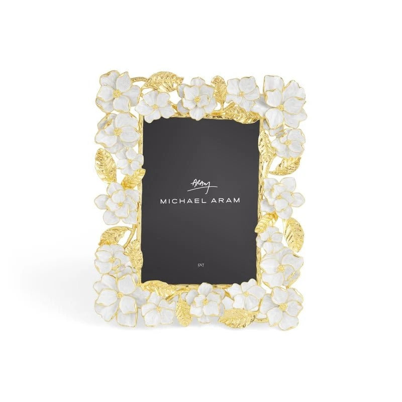 The Gardenia Sculpted Frame (5x7) is a luxurious showcase for your most treasured moments. Handcrafted in goldtone metal with individually hand-enameled gardenia blooms and leaves, it radiates romantic elegance. Each sculpted detail reflects the artistry and emotion of a flourishing garden in full bloom.