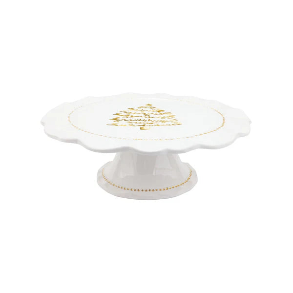 Giorno di Festa translates to a day of happy events," and this sophisticated, joyful dinnerware ensures just that. A simple gold tree and wreath adorn the Giorno di Festa Cake Stand and the result is timeless. You will enjoy this collection every holiday season for decades to come.