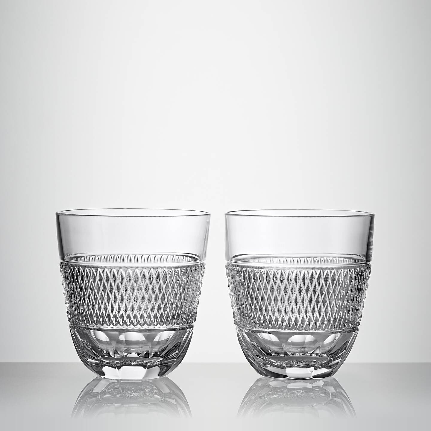 Rich in heritage and tradition, the Copper Coast Double Old Fashioned glass is a testament to the skill of our Master Craftsmen. The design, inspired by the rugged Irish coastline, features a wide central band of tight refracting caro cuts, representing the ocean, and deep cut rings symbolising the horizon. The olive cuts at the base reflect the minerals extracted from the rocks by the ancient miners.