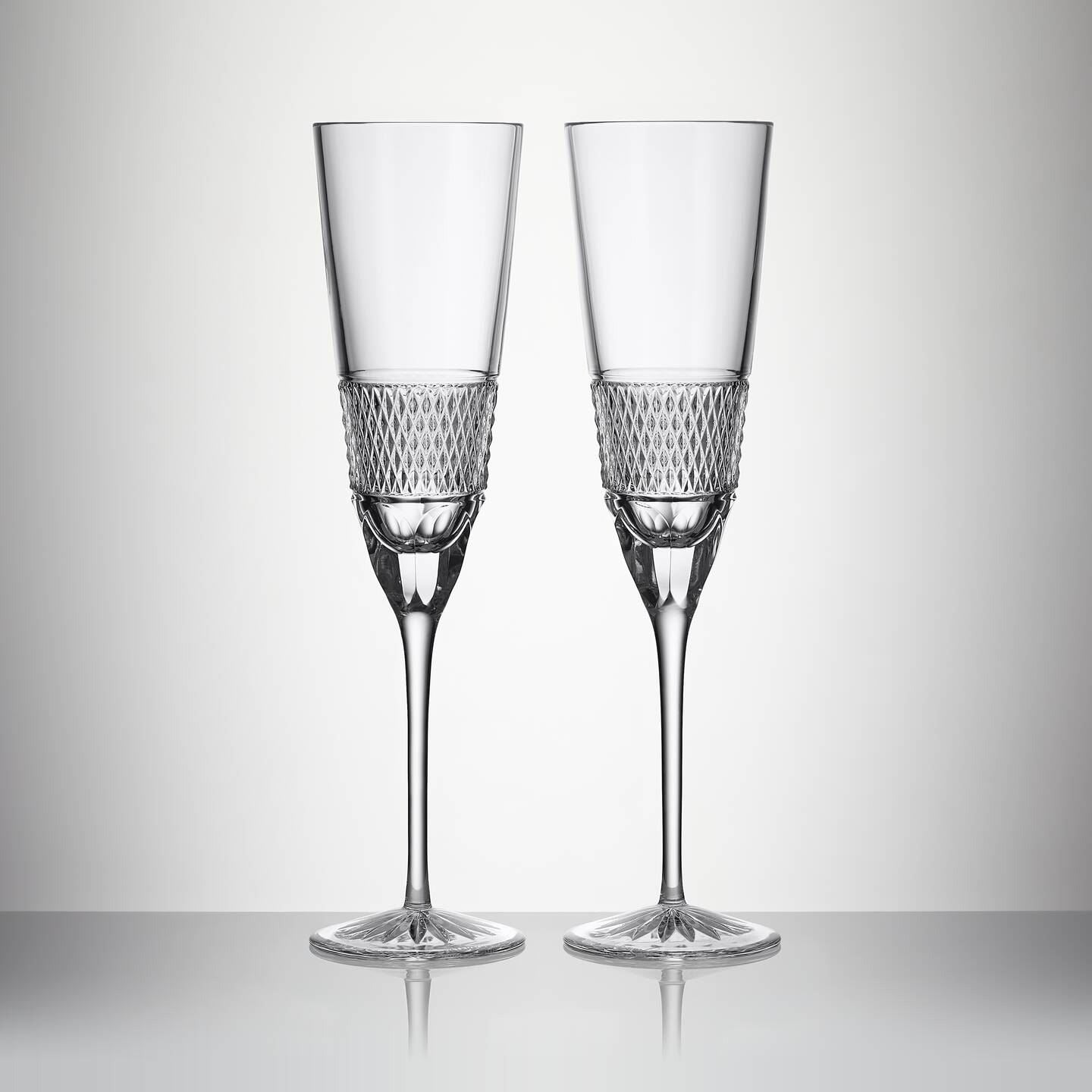 Crafted by our Master Craftsmen in Waterford, Ireland, this Copper Coast Flute is a perfect embodiment of Irish tradition and design. Its wide central band of tight refracting caro cuts represents the ocean's movement, while the deep cut rings symbolise the horizon. The olive cuts at the base reflect the minerals extracted from the rocks by the ancient miners, adding a touch of historical richness to the piece.