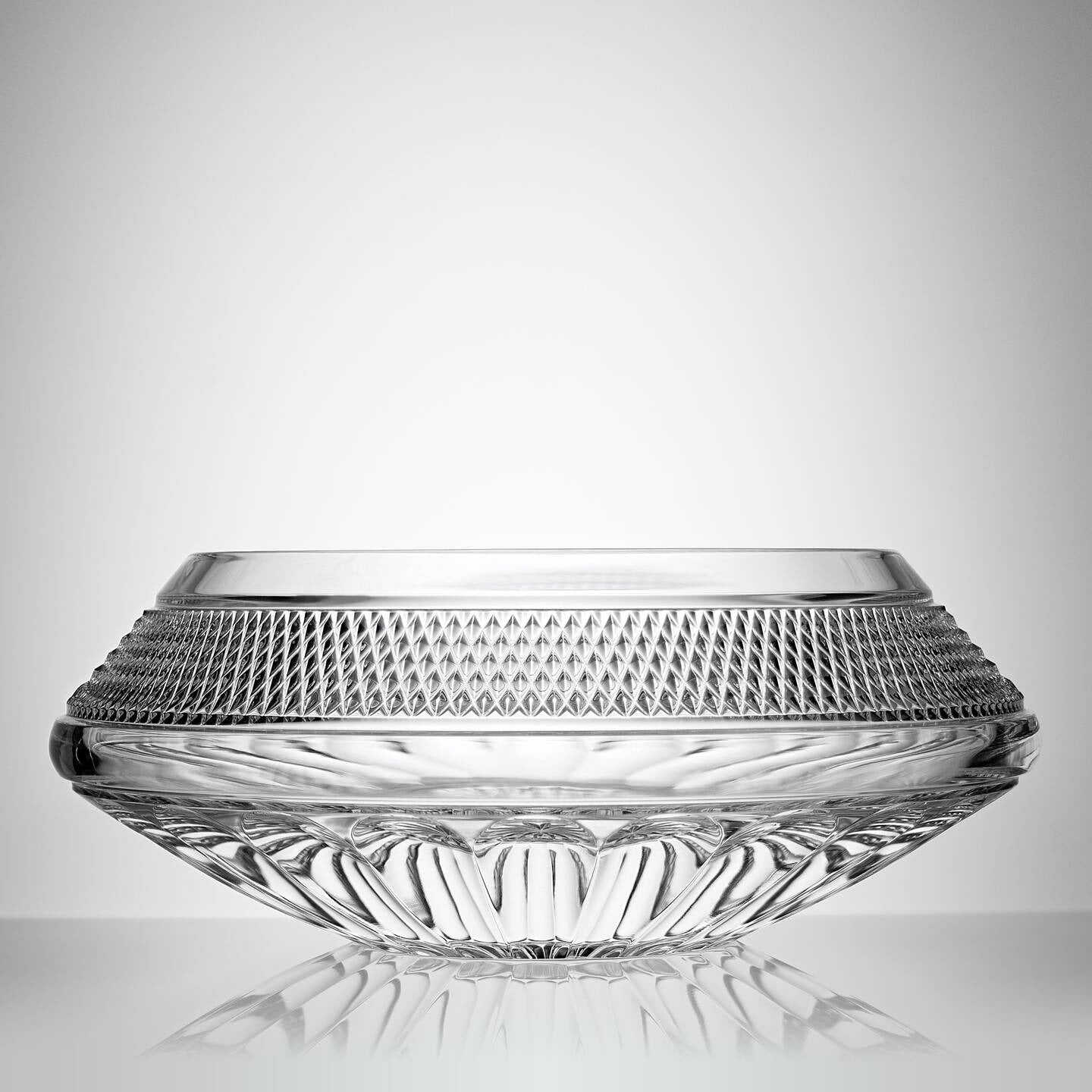 Our Copper Coast Low Bowl is a stunning piece of craftsmanship that brings the Irish tradition of bringing people together to your home. Handcrafted in Ireland by our Master Craftsmen, it features a wide band of tight refracting caro cuts, representing the ocean's movement, framed by deep cut rings symbolising the horizon. Olive cuts at the base symbolise the minerals extracted from the rocks by ancient miners.