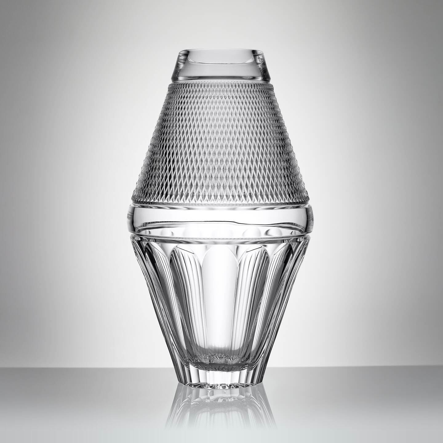 This Copper Coast Vase, handcrafted by our Master Craftsmen in Waterford, Ireland, is a stunning testament to the beauty of the Irish coastline. The central band of refracting caro cuts, framed by deep cut rings, represents the movement of the ocean, while the olive cuts at the base symbolise the minerals extracted by ancient miners.