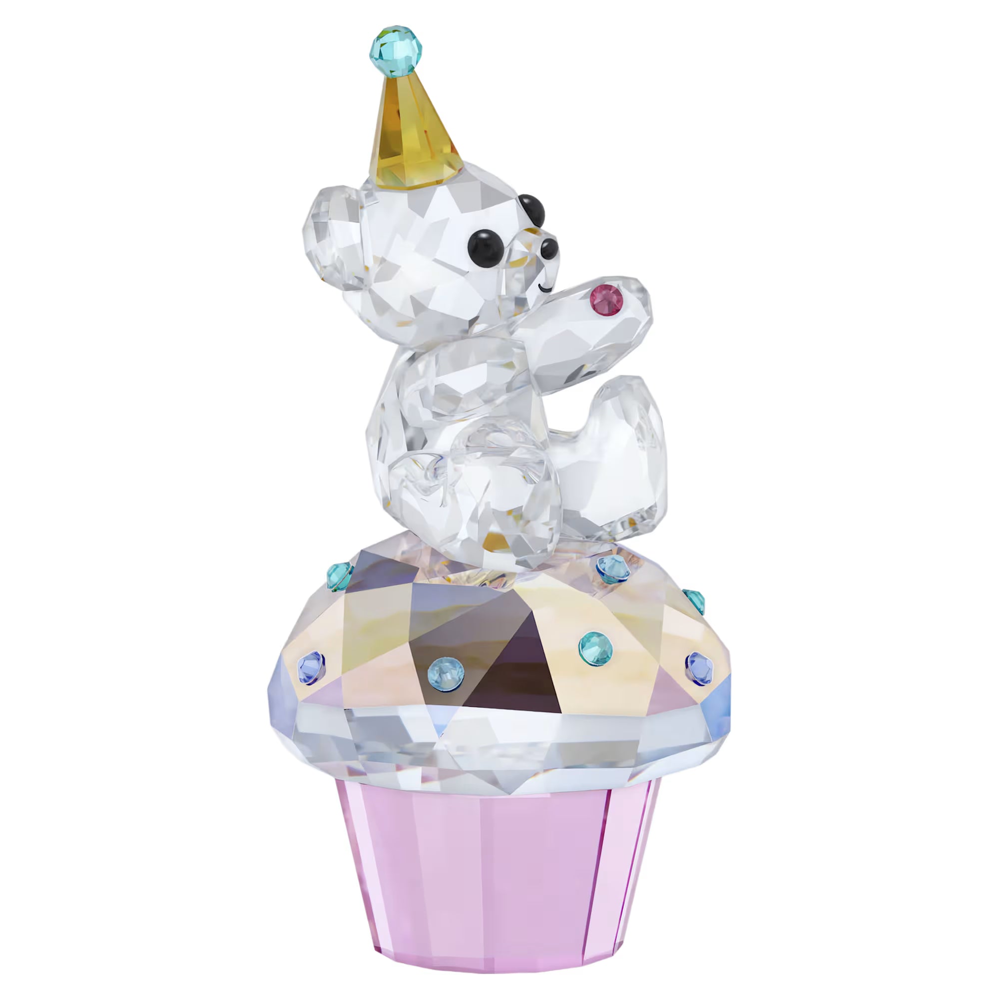 For birthdays, milestones, or any moment worth celebrating, this Kris Bear figurine makes a charming companion. Crafted with 739 facets, the design reveals our cheerful bear sitting atop a delicious cupcake, which is decorated with a joyful pink wrapper, a cake with Swarovski’s Aurore Boreale effect, and various flatback crystals in shades of blue. Enjoy this Kris Bear as a wonderful party centerpiece or a memorable gift on someone’s special day. Decoration object. Not a toy. Not suitable for children under 15.
