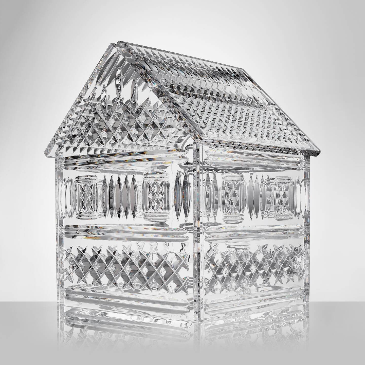 The incredible Gingerbread house was handcrafted at the House of Waterford in Ireland. The Master Craftsmen’s cuts are bold and graphic taking their design inspiration from the classic frosted festive treat combined with Waterford’s iconic Lismore pattern. Each 11.75 inches Gingerbread House takes 64 hours to produce, making brilliant centerpiece and conversation starter this holiday season.