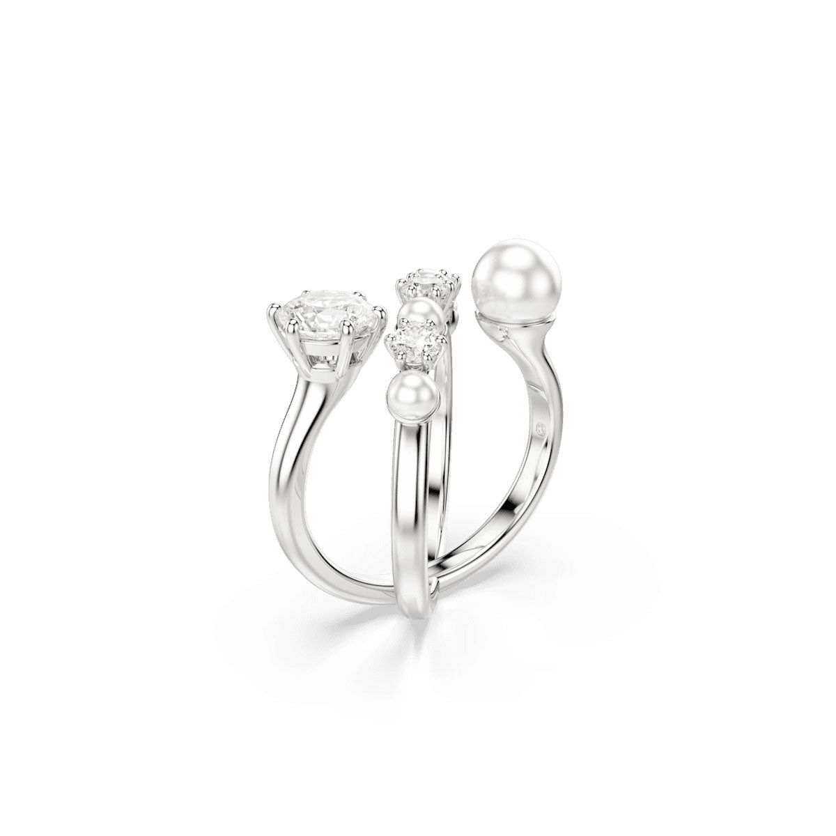 Striking the perfect balance between contemporary and classic, this Swarovski Matrix ring is infused with elegance. The band is rhodium plated and diagonally adorned with a variety of Swarovski Zirconia and Swarovski Crystal Pearls, with the largest of these appearing to almost float thanks to the ring’s mesmerizing open design. A delight to see up close, and even more impressive when worn alongside a matching bracelet or necklace.