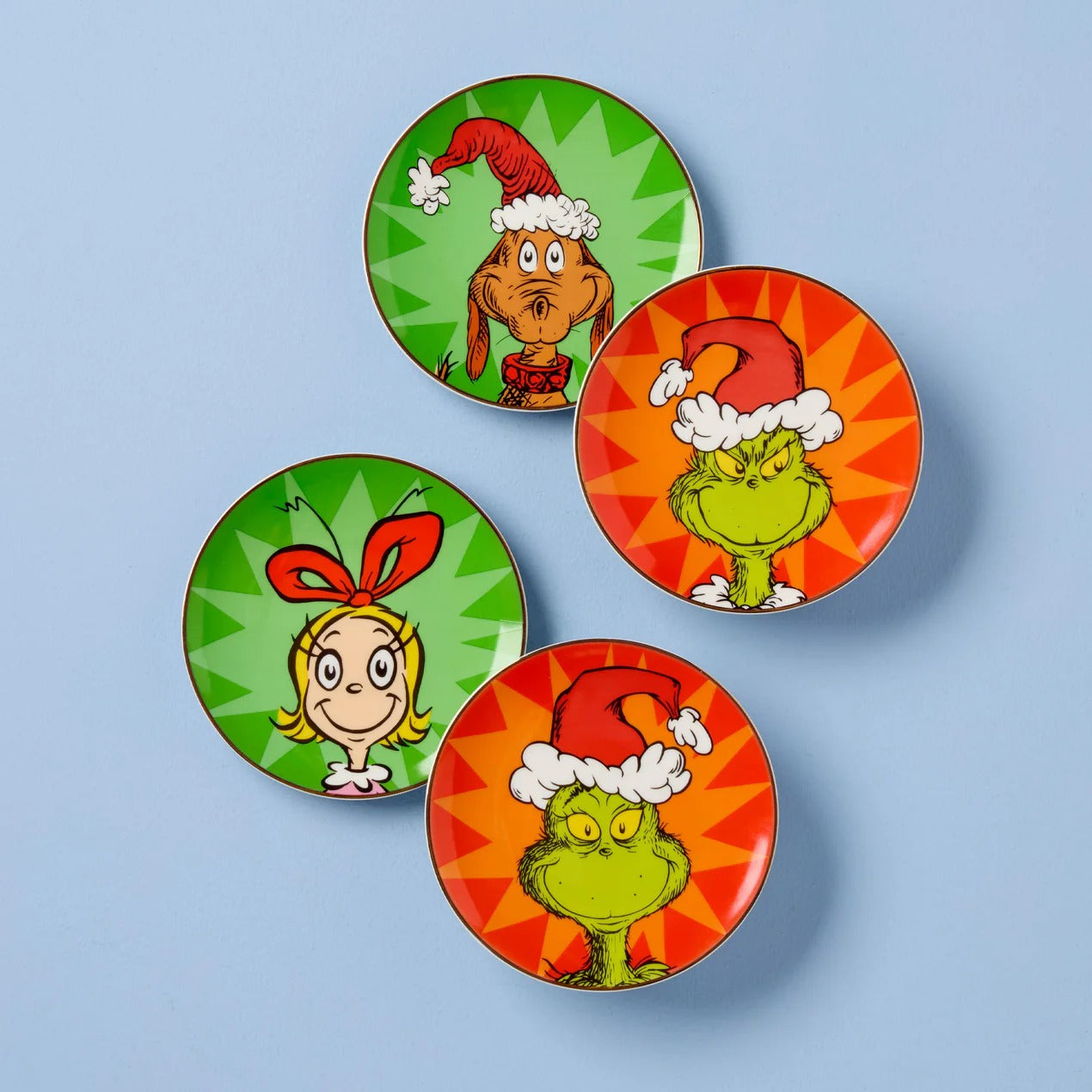The Grinch is going to steal Christmas... and your heart! This entertaining set of assorted tidbit plates features the festive faces of the Grinch, Max, and Cindy Lou Who.
