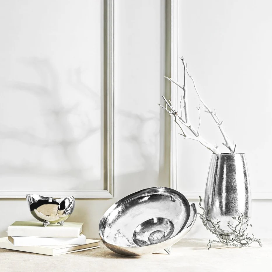 Celebrate the serene beauty of the sea with this handcrafted nautilus shell bowl. Sculpted in hand-textured stainless steel and finished in luminous nickelplate, it captures the organic grace of ocean life. A statement piece of quiet luxury, inspired by nature’s resilience and elegance.