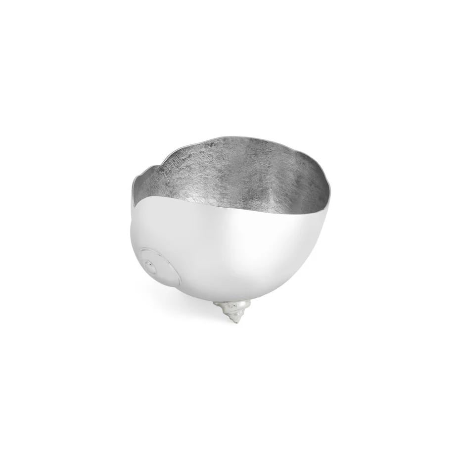 The Ocean Reef Moon Shell Bowl captures the serene beauty of the sea, handcrafted in hand-textured stainless steel with a radiant nickelplate finish. Inspired by the ocean’s strength and renewal, this elegant bowl offers a refined touch of nature’s tranquility. Available in two sizes, it’s a luxurious addition to any space.