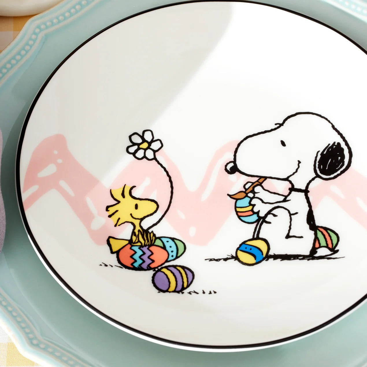 Snoopy and his bff Woodstock are EGGcited for Easter! Each plate in this adorable set of four illustrates the too-cute twosome smiling for spring with baskets, blooms, and even a wheelbarrow of Easter eggs. Add these to the table for a fresh, fun take on bunny day brunch.