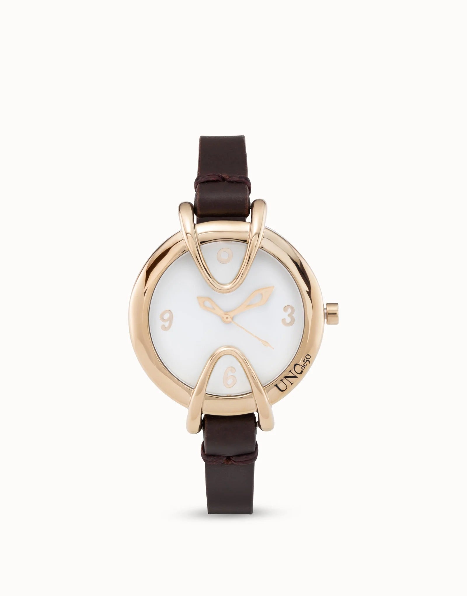 The watch of the Brave collection has a unique design and is composed of a white round dial and an iconic UNOde50 leather strap. A Made in Spain creation handcrafted through a meticulous process. A collection that represents creativity, generosity, and abundance. Features that strengthen spirituality and boosts connection and self-confidence.