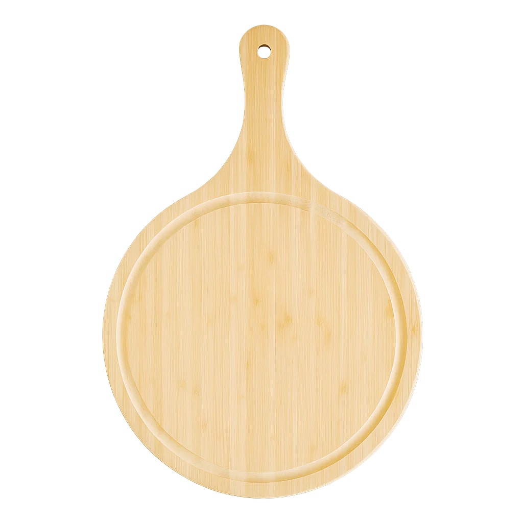 This round bamboo cutting board with juice grooves brings a stylish and functional touch to any kitchen. Made from solid bamboo and laser engraved with your personalized design, it is perfect for chopping, serving, or display. The circular shape adds a modern feel, while the grooves help catch juices to keep your surfaces clean.