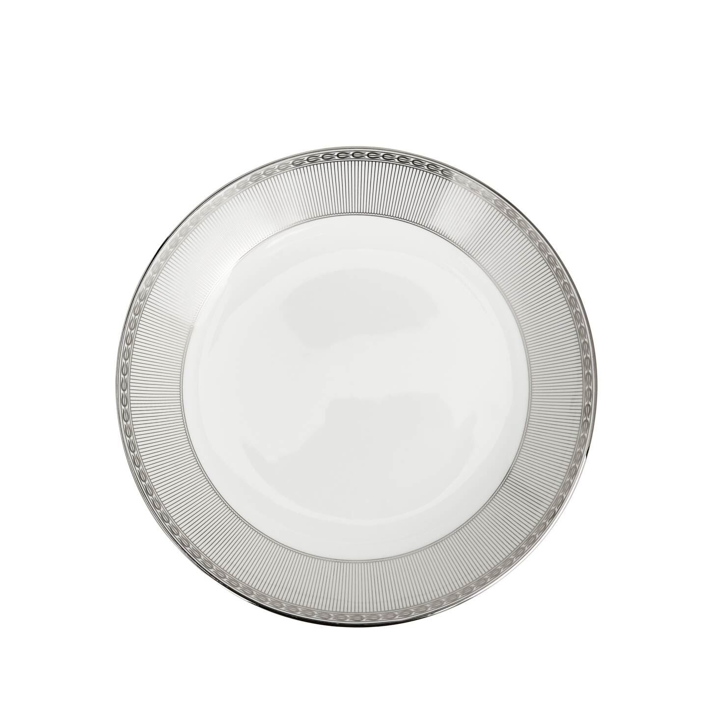 Enhance your dining experience with the Silver Tonquin Deep Plate. Crafted from fine bone china of the highest quality, this elegant plate features intricate platinum detailing that adds a touch of sophistication to any meal. Perfect for both casual and formal dining, it combines classic beauty with modern elegance.