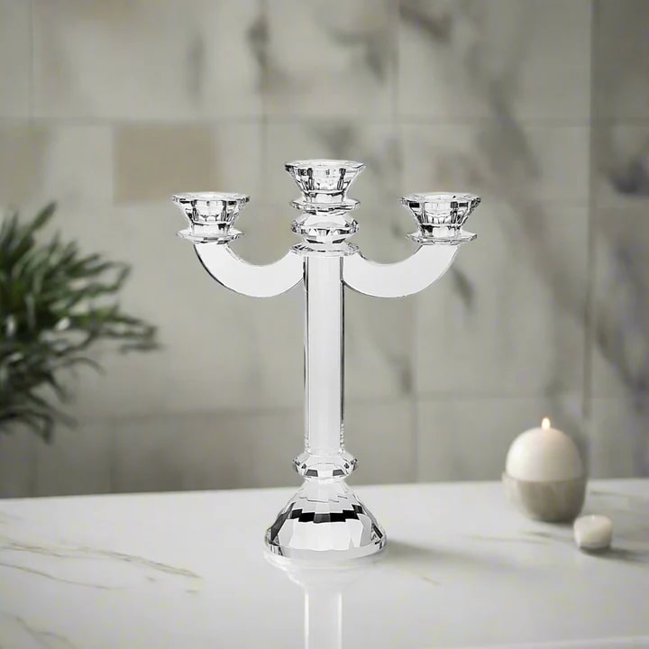 Indulge in the opulence of our Traditional 3-lite Crystal Candelabra, masterfully crafted from the finest quality crystal. The intricate cut of the crystal exudes sophistication, adding a touch of luxury to any living space. With its three-lit design, it sets a warm and welcoming atmosphere for every occasion. Elevate your decor and create an exclusive ambiance with our exquisite candlestick holder.