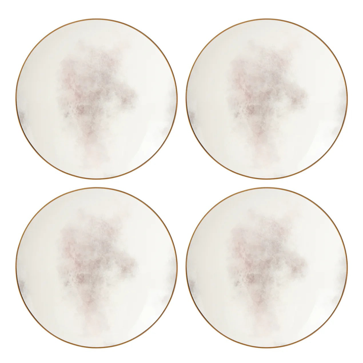 Perfect for salads, sandwiches and sides Trianna Salaria Salad Plates showcase a coupe design evocative of blended pink and grey watercolors. Accented with microwave-safe gold, this durable ceramic porcelain dinnerware is dishwasher and microwave-safe. Coordinates with Trianna solid dinnerware.