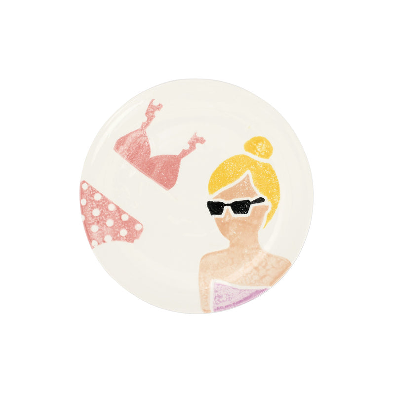 Pure fun, the Riviera Pink Bikini Salad Plate celebrates la dolce vita. The collection's assortment of swimsuits, snorkels, flipflops, and sea life capture the joy and warmth of an Italian beach, and they make all of your gatherings feel like a long-awaited and well-deserved vacation.