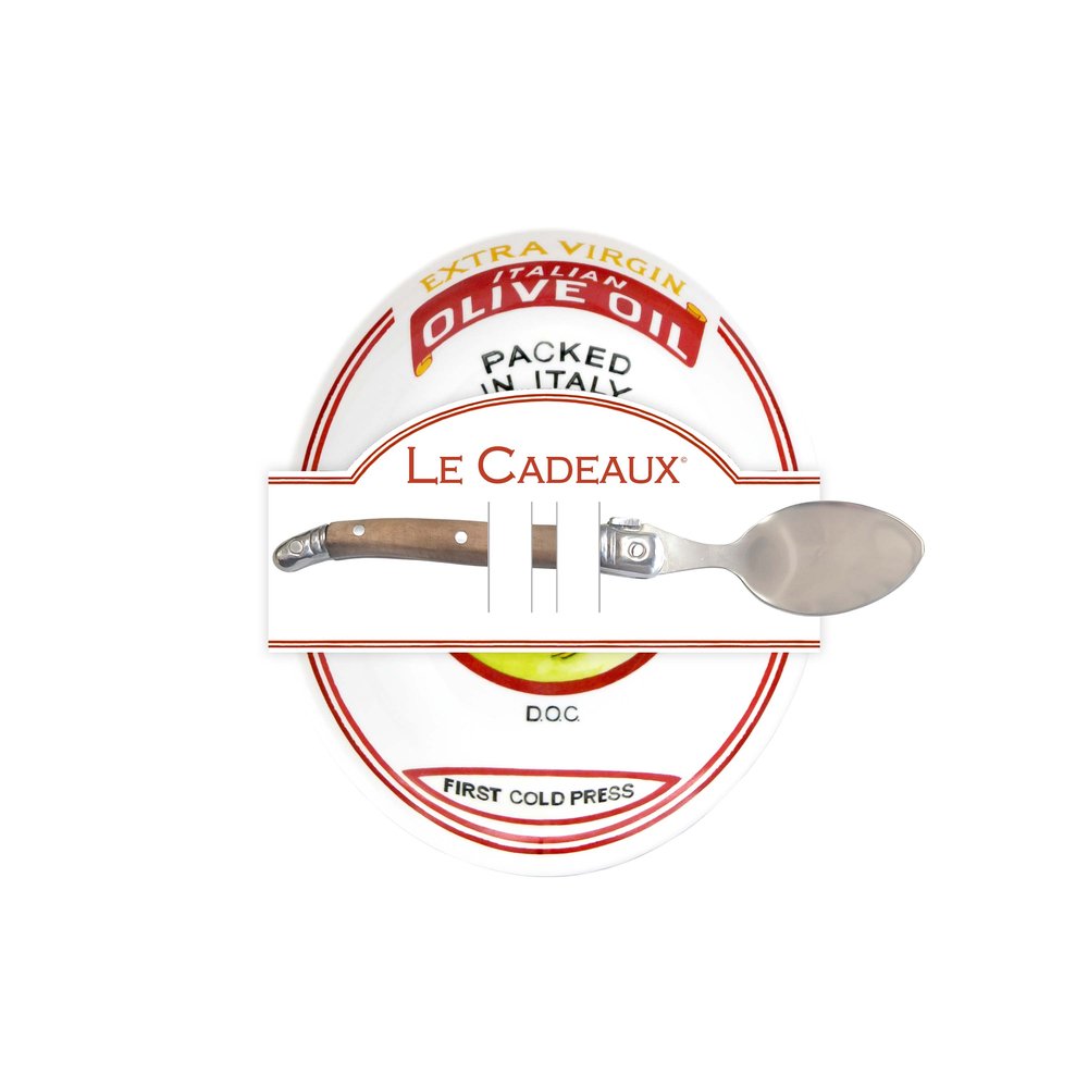 Our Vintage Olive bowl with acacia wood handled Laguiole spoon sets the mood at your gathering or with its gift packaged look makes the perfect gift. Pair it with our Vintage Olive appetizer plates, cheeseboards, and napkins to round out the cocktail party look! BPA Free 100% melamine, shatter-resistant and dishwasher safe, top and bottom rack, as with all melamine, not recommended for microwave. Product includes one olive bowl and one acacia wood Laguiole spoon.