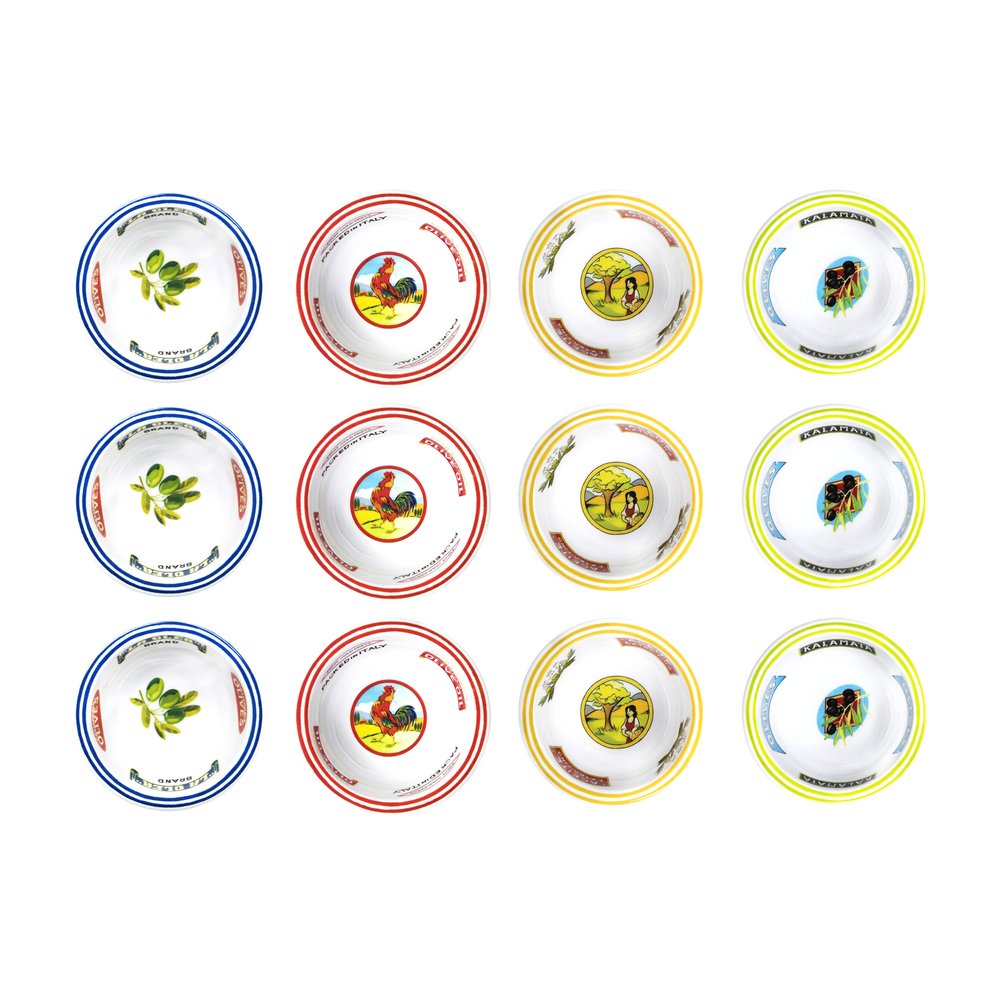Perfect for entertaining and small bites, our Vintage Olive mini dipping bowls come in a set of 12. They make excellent cooking prep bowls and round out the cocktail party look when paired with our Vintage Olive gift sets and napkins! BPA Free 100% melamine, shatter resistant and dishwasher safe, top and bottom rack, as with all melamine, not recommended for microwave. Product includes 12 mini bowls, 3.25” in diameter.