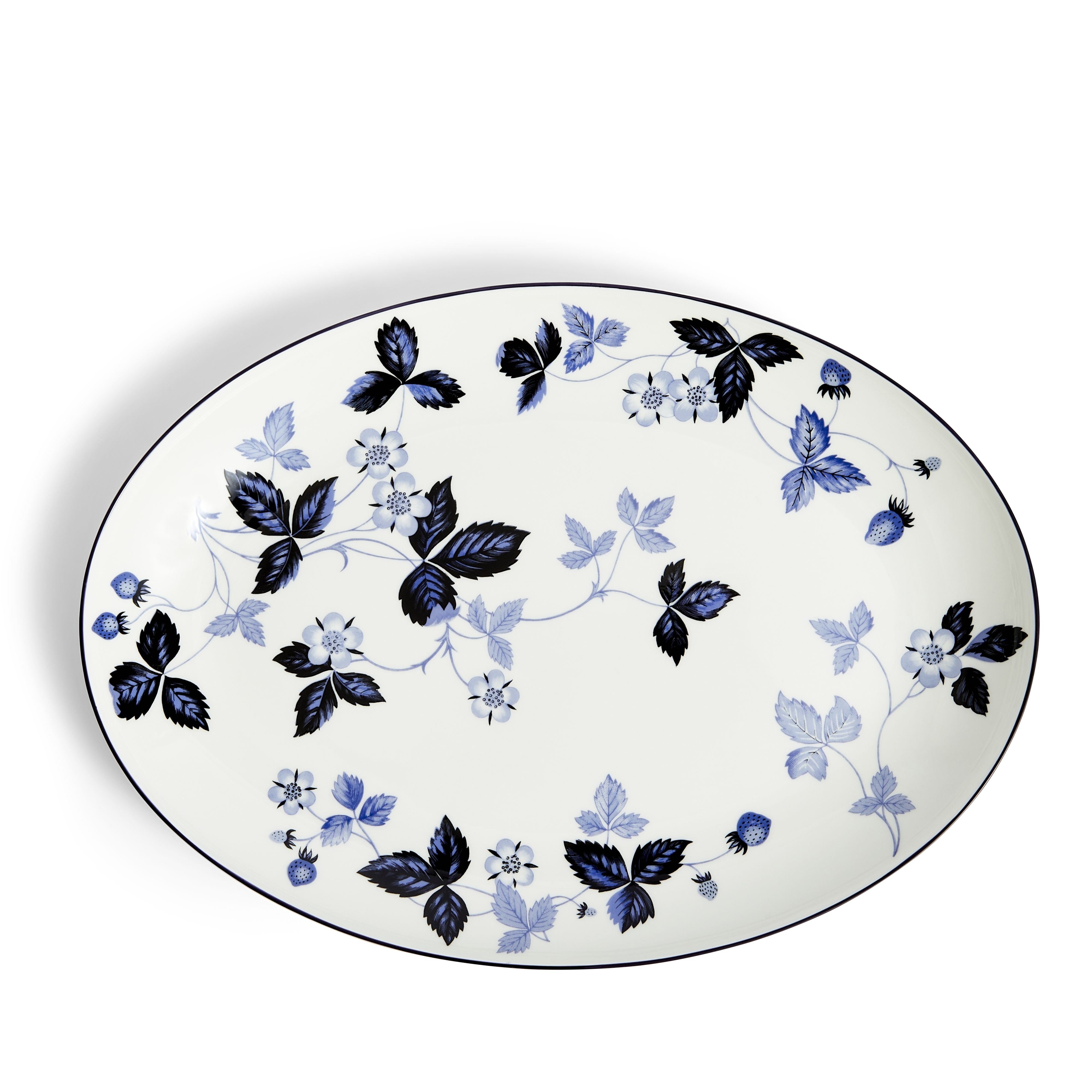 This Wild Strawberry Inky Blue serving plate brings a fresh, modern twist to a classic design. The deep inky blue colour, synonymous with fine English bone china, is beautifully contrasted against the white fine bone china body. The oval serving plate is adorned with hand-drawn vines and plump strawberries, making it a stunning addition to any table setting.